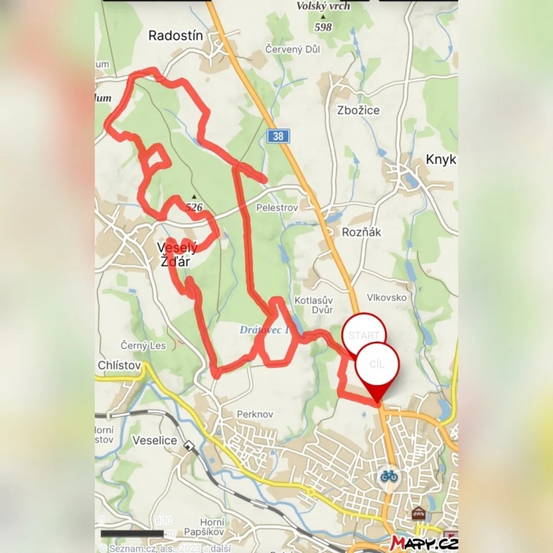 1. Nový hřbitov - Rozňák - Radostín - Veselý Žďár - Nový hřbitov - odkaz na mapy.cz