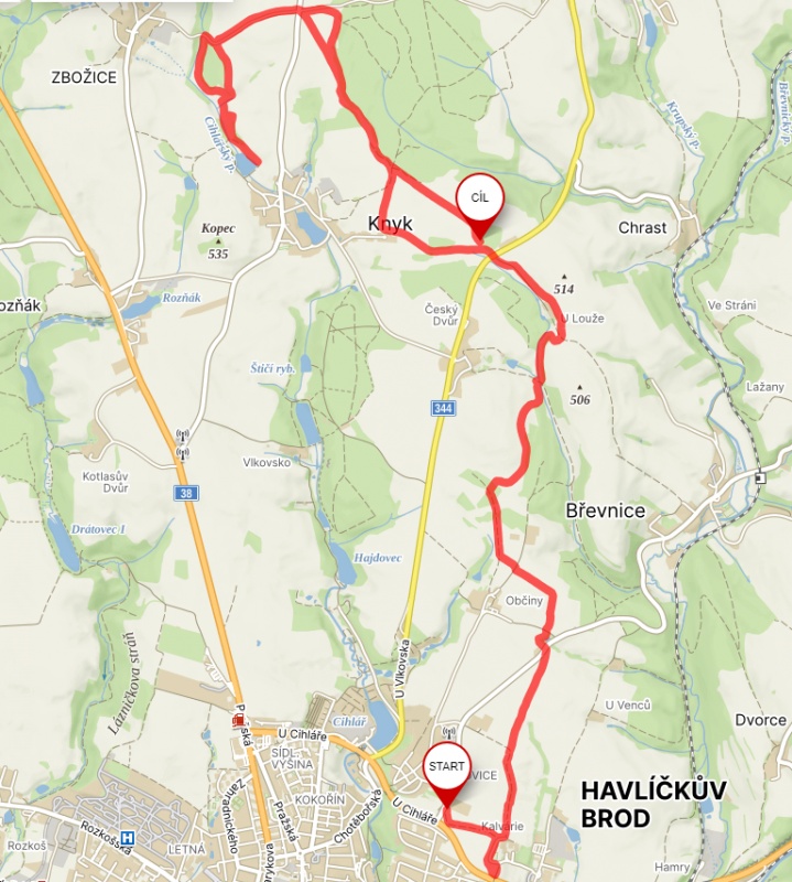 3. Žižkov - Knyk - Zbožíce a zpět - odkaz na mapy.cz